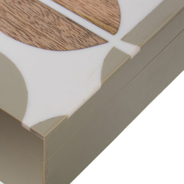Esta caja joyero combina la belleza natural de la madera con la elegancia moderna de la resina, creando una pieza única y encantadora que no solo es funcional, sino también un elemento decorativo impresionante para cualquier tocador o estante.