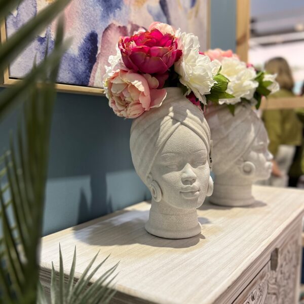 Agrega un toque de exotismo y elegancia a tu hogar con este jarrón busto.