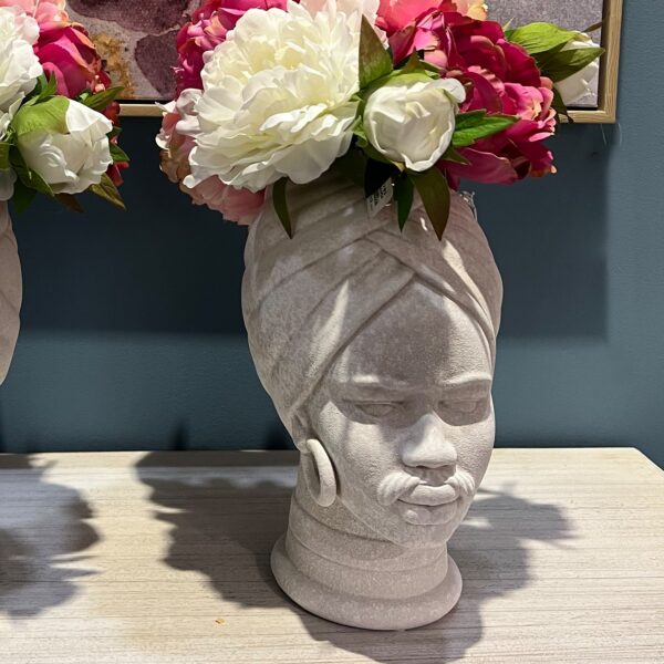 Agrega un toque de exotismo y elegancia a tu hogar con este jarrón busto.