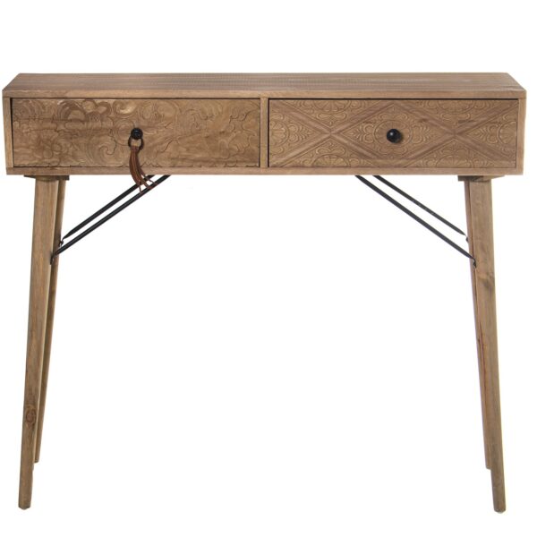 Dale la bienvenida a tu hogar con estilo con esta preciosa mesa de recibidor. Esta pieza elegante no solo es funcional, sino que también añade un tuque de calidez y encanto a tu entrada. Sus espaciosos cajones ofrecen un lugar para colocar llaves, correo y otros elementos esenciales al llegar a casa. Además, su elegante estética complementará cualquier estilo de decoración.