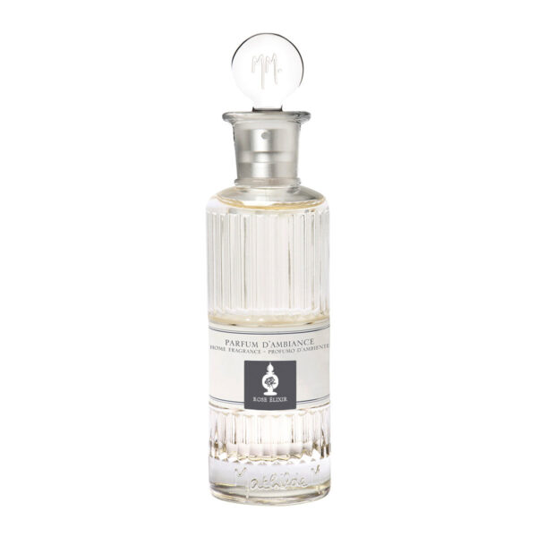 La fragancia de hogar Mathilde M. perfuma instantáneamente cada estancia de tu hogar. Con una excepcional concentración de perfume del 20% en su composición, bastan unas pocas pulverizaciones para perfumar intensamente la habitación con Rose Élixir, una fragancia voluptuosa y encantadora, una mezcla de rosa, la reina de las flores, y notas atalcadas de violeta. , sobre un lecho de almizcle blanco.