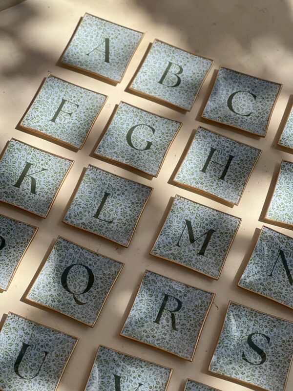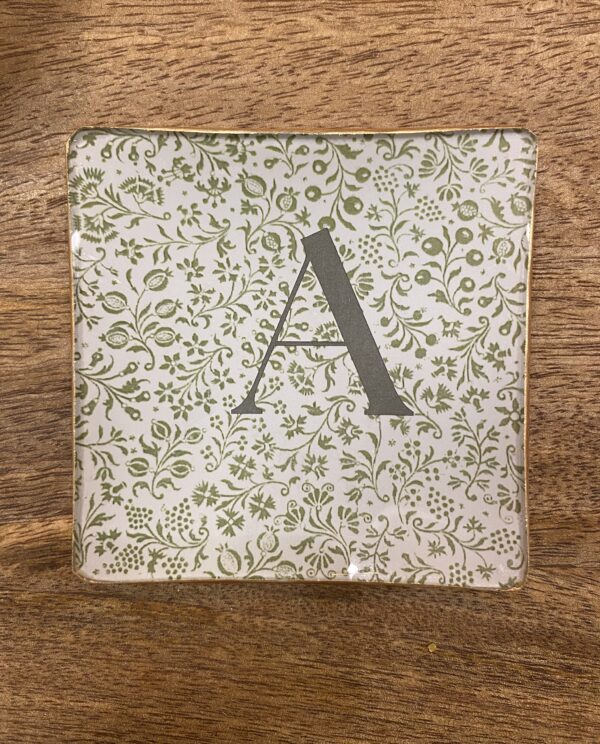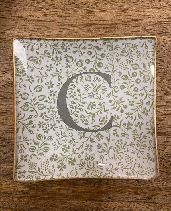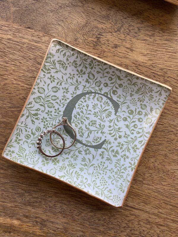 Plato de cristal estampado a mano, personalizado con tu inicial.
