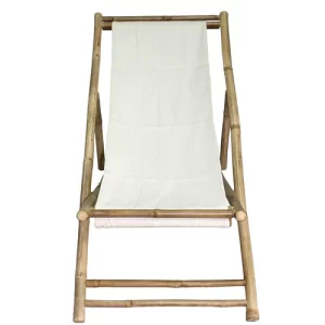 Tumbona plegable en bambú natural y lona de algodón.
